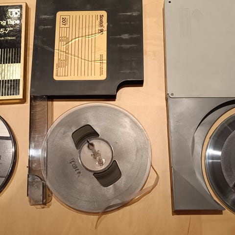 5 stk 10,5 tommers lydbånd på metallspoler.
