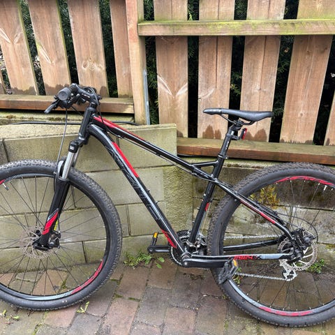 Den er pent brukt, velholdt av en pappa med stor sykkel interesse, lagret i garasje, men har noen bruksmerker på ramma, se eget bilde.
