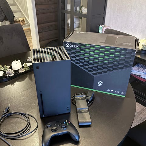 Selger en strøken xbox series x som er kjøpt i 2024. Den funker som den skal uten feil eller noe og følger med alt av tilbehør og kvittering og nesten helt ny kontroll som var kjøpt 2 måned siden.