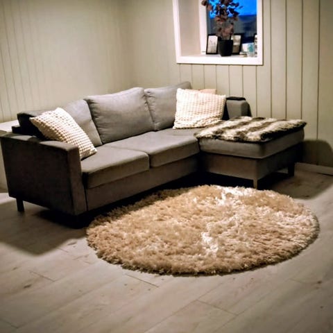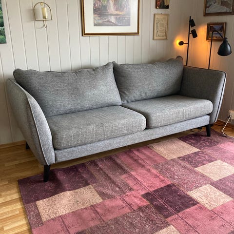 Fargen er lys grå og selges rimelig. Ny pris på Jysk er kr 5999,-