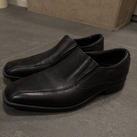 ODIN pensko ‘ shoes for us loafers’i slip on mod..i skinn..i størrelse 46. Klassiske, sorte pensko med glatt overdel og kvadratisk tupp. Skoene har lav hæl og gummisåle med mønster for bedre grep. Passer til bruk ved formelle anledninger, jobb eller andre situasjoner der man ønsker et mer pyntet uttrykk.