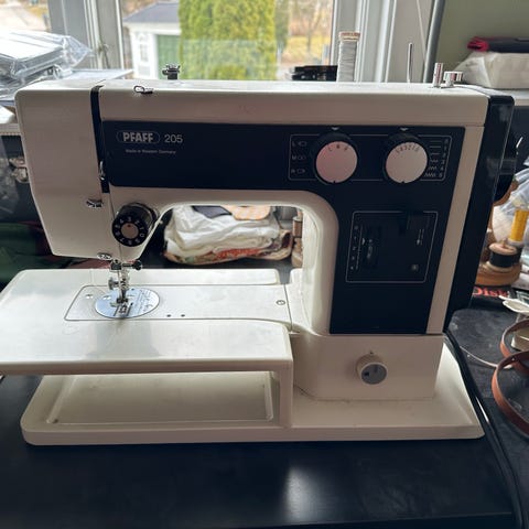 Toyota EX490 symaskin i kremfarget utførelse.