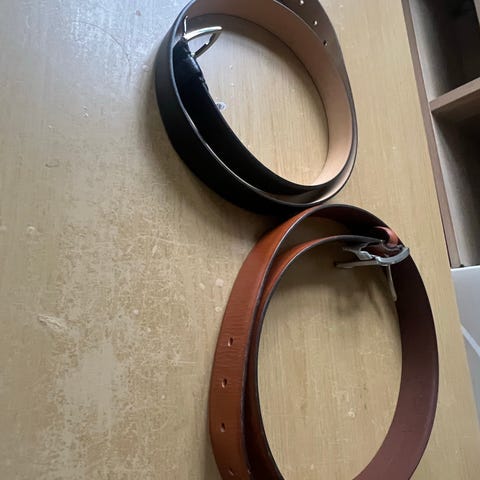 En lot belter i skinn selges! 11 stk, str 85-105.