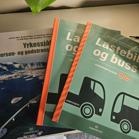1) "Lastebil og buss" – fagbok som dekker temaer knyttet til kjøring og håndtering av lastebil og buss, herunder kjøretøytyper, kjøreegenskaper, sikkerhet og relevant regelverk.