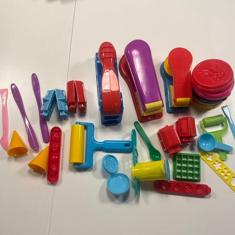 Play-Doh lekesett x2 til modellering med tilbehør. Det er to sett; ett med tema matlaging og ett med tema iskrem. Settet inneholder flere fargerike plastdeler, former, redskaper og tilbehør til å lage ulike figurer og former. Passer til barn som liker kreativ lek med modellering og rollelek på kjøkken eller servering.