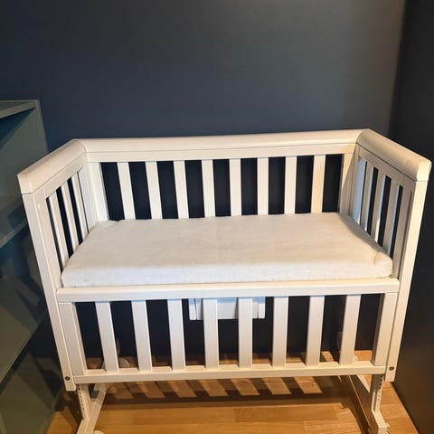 Komplett Troll bedside crib + AeroSleep madrasspakke (som ny) og sengekant