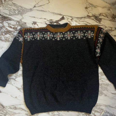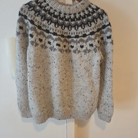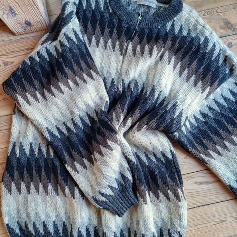 Håndstrikket ullgenser i ull. God og varm! Herrestørrelse large, romslig. I god stand! Litt nupper.