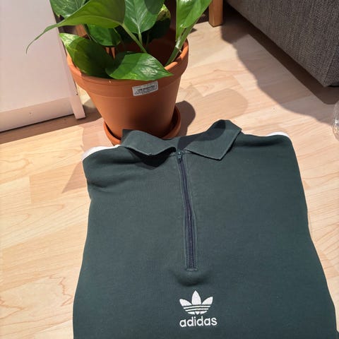 Selger en stilren og tidløs zip-genser fra Fred Perry i en fresh mintgrønn farge. Genseren fremstår som svært pent brukt, uten synlige bruksmerker.