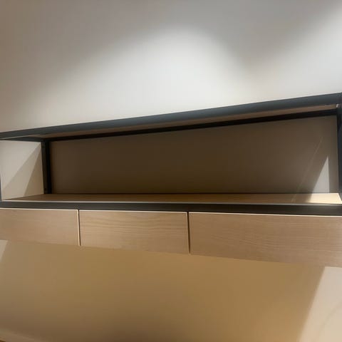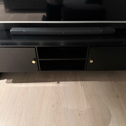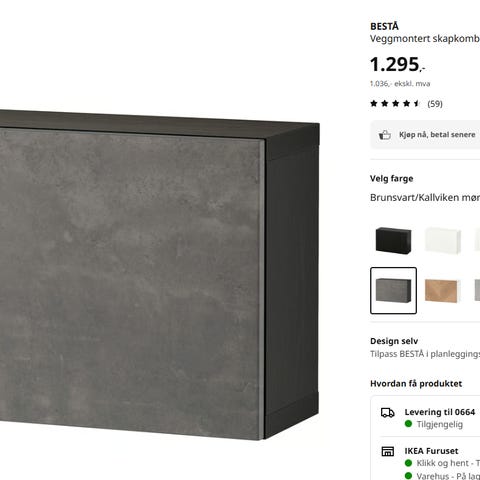 Veggskap i sort høyglans til salgs. Er fra IKEA, en eldre versjon av bestå som IKEA ikke har lenger. Bredde 180 cm, høyde 28 cm. Veldig pent brukt. Må hentes i Ski.