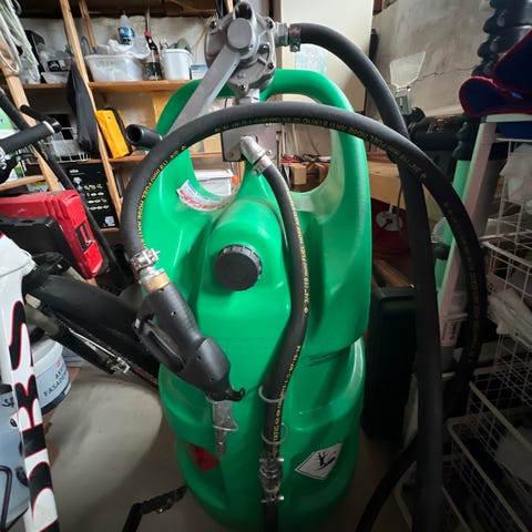 Husqvarna bensinkanne på 5 liter i grønn plast. Kannen har integrert bærehåndtak og påfyllingstut med fleksibel slange for enklere påfylling. Egnet for oppbevaring og transport av bensin til for eksempel hagemaskiner og annet motorutstyr. Lokket er festet til kannen med stropp for å redusere risiko for at det blir borte.