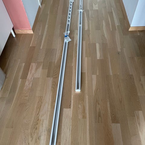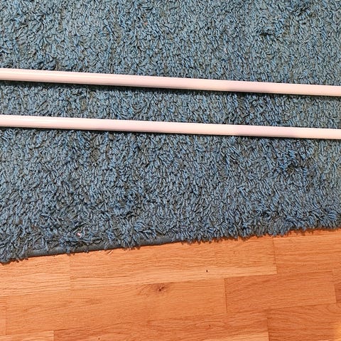 5 gardinstenger med fester. Uttrekkbar lengde.