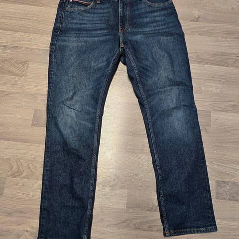 Buksene er laget av 98% bomull og 2% elastan, noe som gjør dem veldig komfortable med god stretch. De er i god stand uten synlig slitasje.