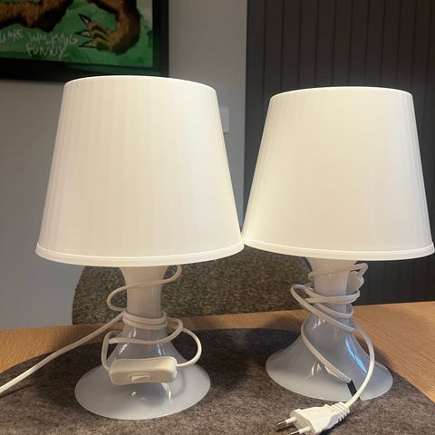 Ledning på den ene er klipt av, den andre original og ujordet, derfor ikke testet hos meg