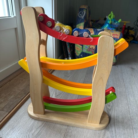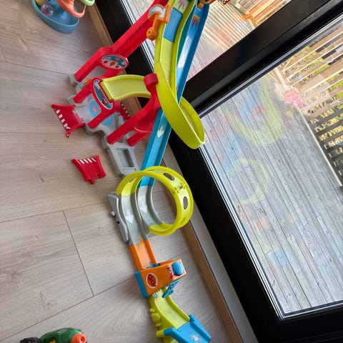 Kjekk bilbane for de minste, følger med 3 stk biler. Av erfaring passer bilbanen fra 8 mnd til ca 3,5.