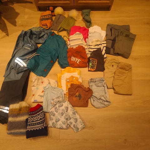 Masse flotte klær selges. Noe er pent brukt, noe er nytt med lappen på og noe mer brukt.