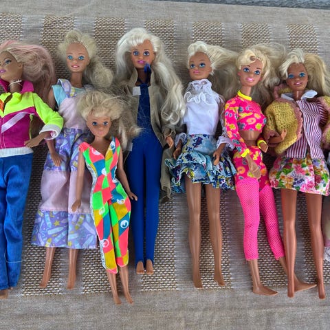 3 Barbie i orginale kjoler fra 90 tallet - alle for 700,-