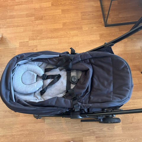 Følger med orginal regntrekk og myggnetting samt ekstra hjul til å ha foran. Følger også med originale vindtrekk til både sportsdel og bagdel.