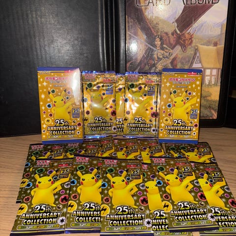 Selger tre stk Pokemon 25th Anniversary Promo pack japansk. Hver pakke inneholder 1 av 25 mulige kort.