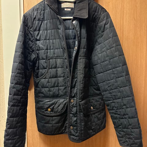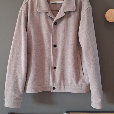 These Glory Days jakke for herre i størrelse M. Jakken er beige med mønstret stoff og er laget i ull og polyester. Den har klassisk krage, skjult lukking foran og to store frontlommer med klaff. Passer som ytterjakke eller lett overgangsjakke i kjøligere vær.