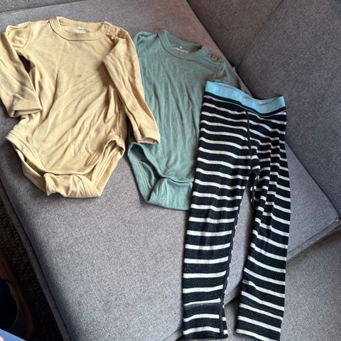 Ullpakke fra Nøstebarn med ubehandlet ull- og silkebukser i str. 92 (merket 86/92, men gode i størrelen og kan brukes lenge). Buksene er pent brukt, og kun vasket for hånd med Sonett ullvaskemiddel, en grønn og en gul. En ekstra gul bukse (også fra Nøstebarn) er litt mer brukt og lappen er klippet bort, så mulig denne er i ren ull, og kanskje en størrelse større (litt annen modell).