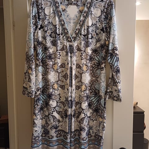 Fin, boho-chic sommerkjole/strandkjole fra Diez Lunas Ibiza, str.M,pent brukt men har et lite hull nederst på ermet,se bilder. Kan sende 🌿