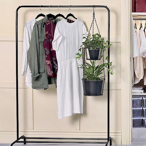 Det er hjul for enkel flytting og justerbar høyde, samt en skohylle.