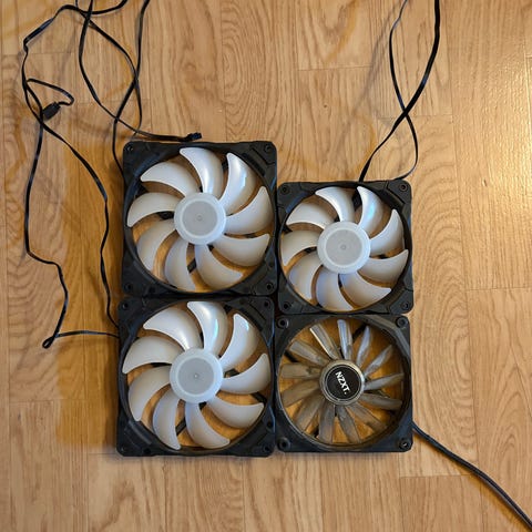 Arctic P14 PWM PST A-RGB kabinettvifter 140 mm i svart og hvit. Viftene har stått på en Arctic Liquid Frezeer III 420 Pro A-RGB. Men ble tatt av da jeg byttet dem ut for noen andre 140mm vifter. Vifte koblingen er veldig korte til alle 3 viftene. Anbefaler og ha en kjøler som har RGB og vifte styring ledning lett tilgjengelig. Kan som sakt sikkert kjøpe lengre vifte kabler.