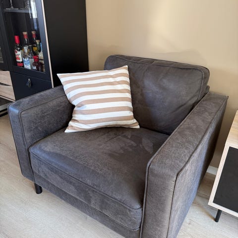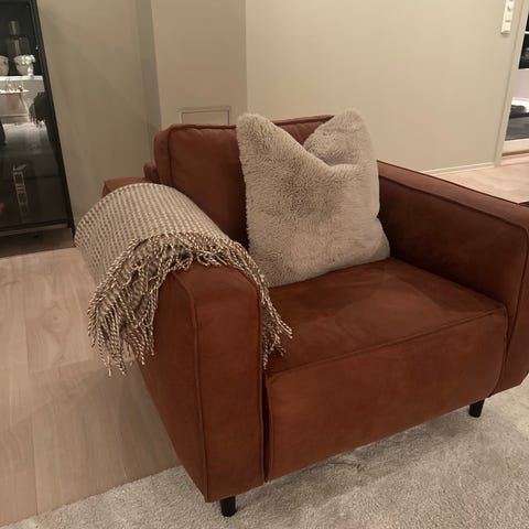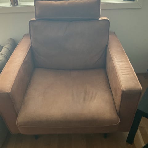 Møbelringen lenestol i brun farge. Designet av Alberto Meda. Komfortabel sittemøbel som passer i stue, TV-krok eller lesehjørne. Klassisk modell med rette linjer og fast polstring. Egnet som enkeltstående stol eller som del av sofagruppe.