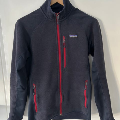 Patagonia fleecejakke for herre i størrelse S. Jakken er grå og laget i mykt fleecemateriale. Den har hel glidelås i front, høy krage og glidelåslommer i sidene samt en brystlomme med glidelås. Passer som mellomlag under ytterjakke eller som lett ytterplagg i mildere vær.