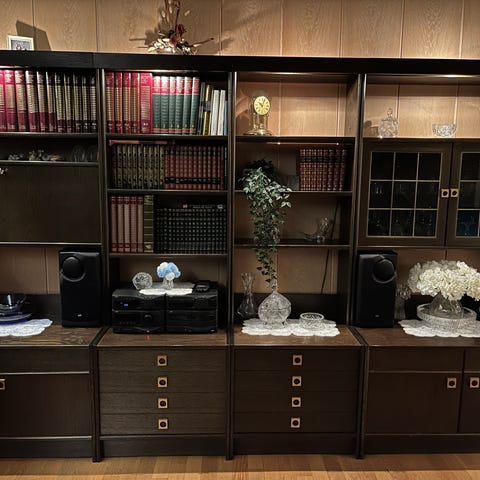 Brun skjenk / seksjon / vitrineskap med lys. 3 deler kan selges separat