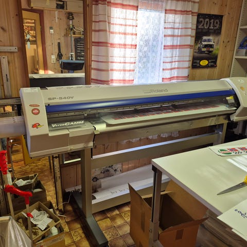 Profesjonell storformatskriver med både print- og kuttefunksjon fra Roland. Maskinen har tidligere vært brukt i grafisk produksjon, men har stått ubrukt i ca. 2 år. Selges nå som reparasjonsobjekt / deleobjekt.