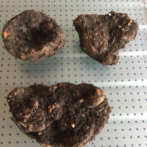 Rotknoller til planting. Egner seg for videre dyrking i hage eller potter. Selges i flere enheter, pakket i plastposer.