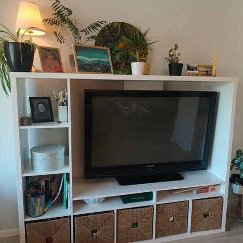 En stilig TV-benk som vil pynte opp enhver stue med liten plass.