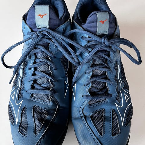 Mizuno joggesko i størrelse 42 (EU 42,5 ifølge merkelapp). Skoene er blå med lyseblå og hvite detaljer, og har snøring foran. Yttersålen er i gummi med mønster som gir godt grep. Overdelen er i syntetisk materiale og mesh for ventilasjon. Egnet som joggesko eller fritidssko til hverdagsbruk.
