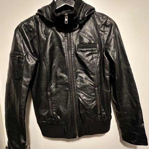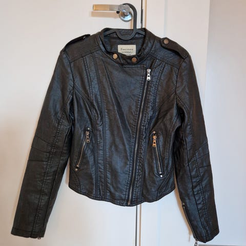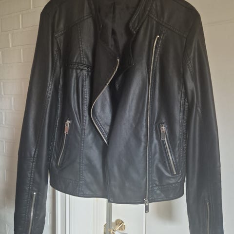ONLY Jacqueline de Yong jakke for dame i størrelse 36. Jakken er laget i svart fuskeskinn og har glidelåslukking i front. Modellen har glidelåslommer i sidene og detaljer på skuldre og ermer.