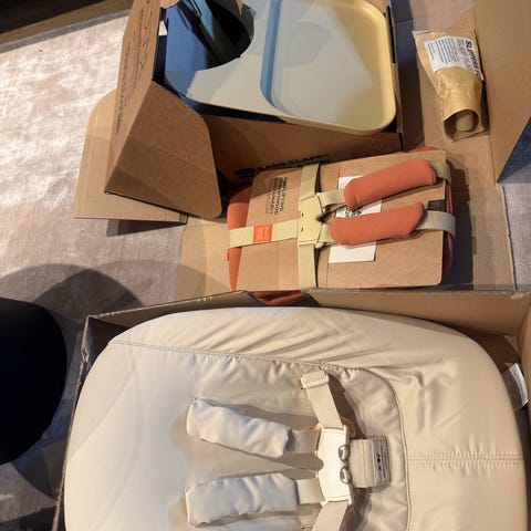 Klapp babysete gjør det mulig å bruke Klapp barnestol helt fra nyfødt. Setet er mykt polstret for komfort og har en justerbar 5-punkts sele som gir barnet sikker støtte under måltider og samvær rundt bordet. Det festes enkelt på alle Klapp-stoler og leveres med Klapp Slippers som sørger for ekstra stabilitet.