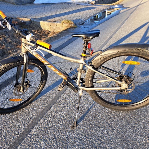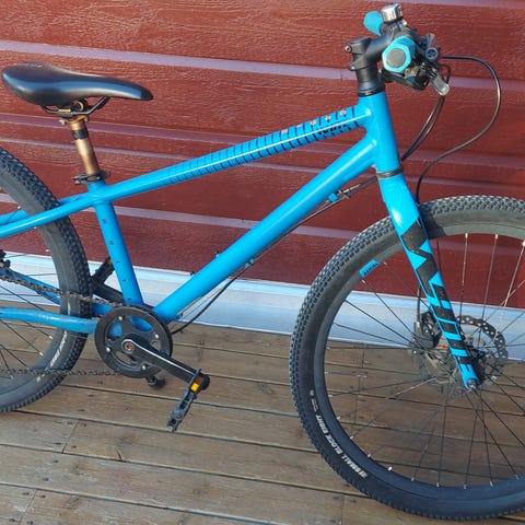 Kjøpt ny av oss og jenta vår vokste så fort at sykkelen er knapt brukt! Faktisk så lite brukt at lappen fortsatt henger på ramma …