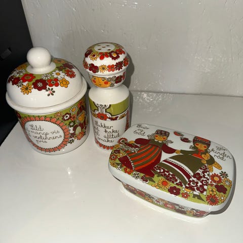 Figgjo Mitt skip er lastet med krukke med lokk hvit med gult og grønt dekor