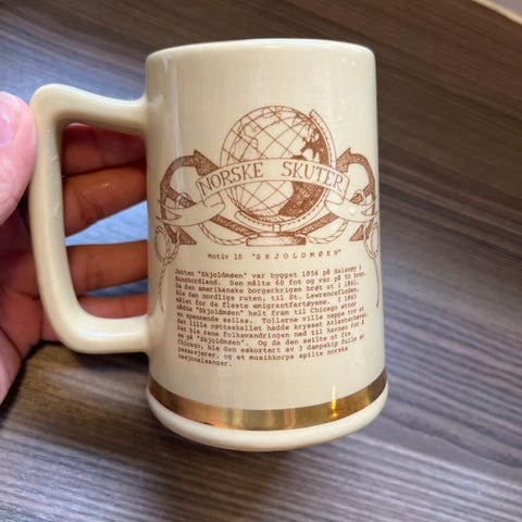 Figgjo Mitt skip er lastet med krukke med lokk i porselen. Krukken er hvit med dekor i gule, grønne og svarte toner rundt hele siden og på lokket. Motivet viser stiliserte blomster, frukt, flasker og figurer, med teksten «Mitt skip er lastet med» og «Turi-design Figgjo Fajanse Norge» i bunndekoren. Krukken har rund form med rett vegg og markert kant øverst, samt lokk med knapp øverst som har gul sirkel i midten. Egner seg til oppbevaring på kjøkken, for eksempel til tørre matvarer eller småting.