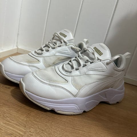 Hvite sneakers med subtile detaljer i sølv. SoftFoam såle gjør skoen behagelig å gå med. Fint brukt.