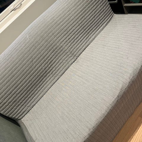 Praktisk sofa, som kan trekkes ut til å bli en sovesofa.