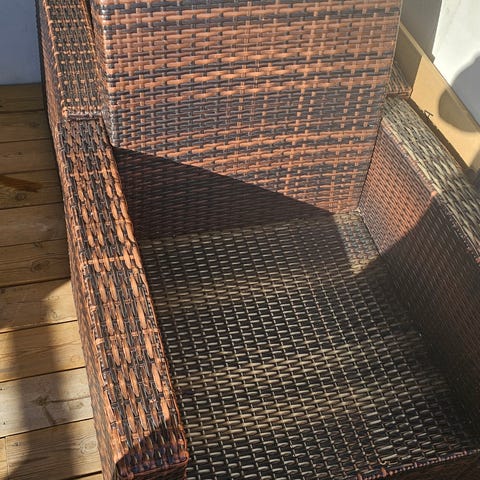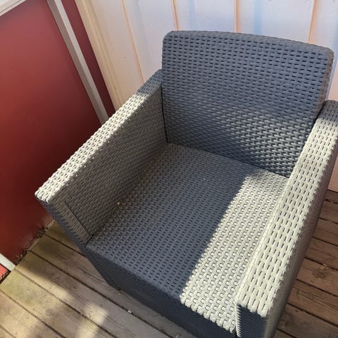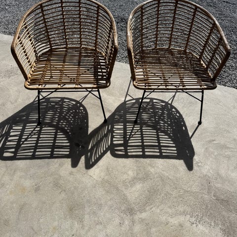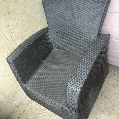 Godt brukte stoler til utendørs bruk med synlig slitasje.