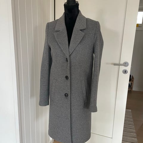 Selected Femme Alma ullkåpe i størrelse 34. Kåpen er svart og laget i ullblanding med glatt fôr på innsiden. Modellen har enkel, rett fasong med knepping foran og lommer i sidene. Klassisk og tidløs kåpe, varm og god. Selges pga feil størrelse.