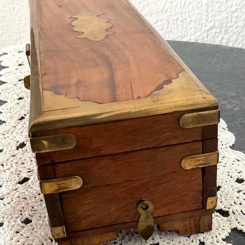 Brukt med slitasje, merker og patina etter alder (se bilder). Dette er en del av sjarmen.
