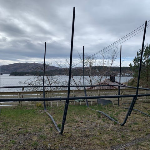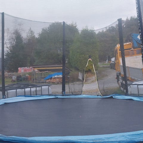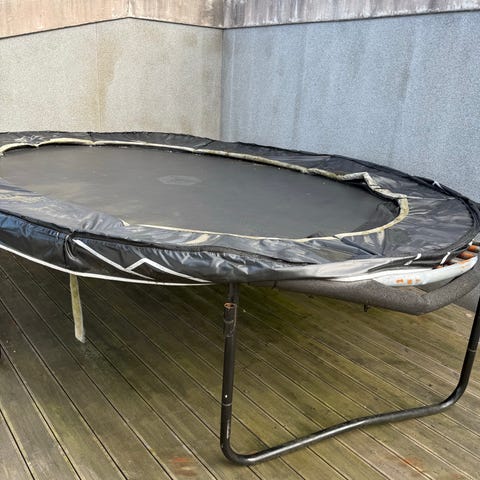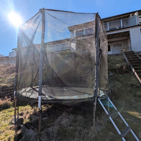 Gir bort 4 nyere trampolinestenger med festebrakett samt sikkerhetsnett som er godt brukt men helt helt og svært solid. Delene er fra en Sport supply trampoline som har gitt oss masse glede gjennom mange år. 4,3 meter i diam, men nettet er justerbart. Kan helt sikkert brukes til andre trampoliner
