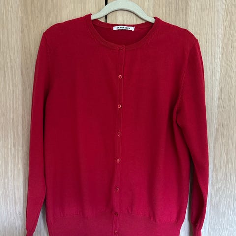 Cardiganen er rød og laget av bomull. Modellen har rund hals og knepping foran. Passer som et lett lag over topper, skjorter eller kjoler i hverdagen eller på jobb. Og en rosa cardigan