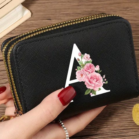 En ny,kreditkortholder med minimalistisk blomsterdesign med et enkelt og avslappet multi-spor-layout. Denne stilige, dobbeltlags myntpung med glidelås er perfekt for studenthybler og skolestart.