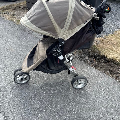 Baby Jogger joggevogn med tre hjul, egnet for én person. Vognen har stort luftfylt forhjul og to store bakhjul som gir god rullekomfort på ulike underlag. Setet har polstret innside i grønn tekstil og fempunktssele. Justerbart kalesje med forlengelse gir skjerming mot vær og vind. Under setet er det en romslig varekurv. Håndtaket har integrert brems og kopp-/oppbevaringsholder. Vognen passer til hverdagsbruk og turer på grusvei og asfalt.