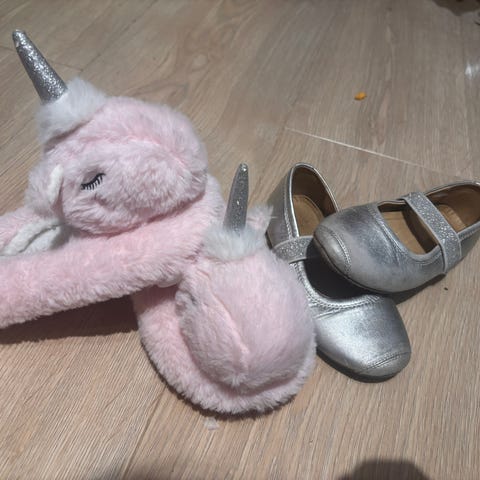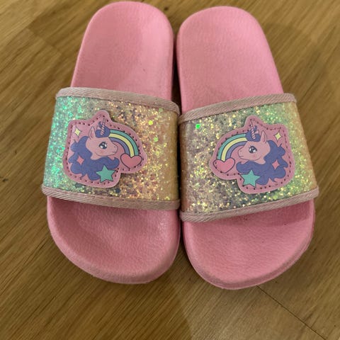 Flipp flopp str. 28 med enhjørnings motiver er til salgs.