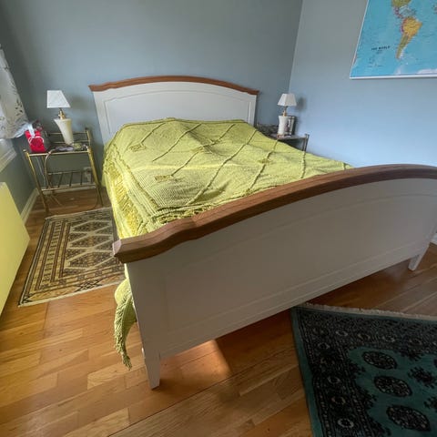 Pen dobbeltseng. Hel og fin, men noe slitemerker nederst på bena. Gis bort mot henting før 29/3